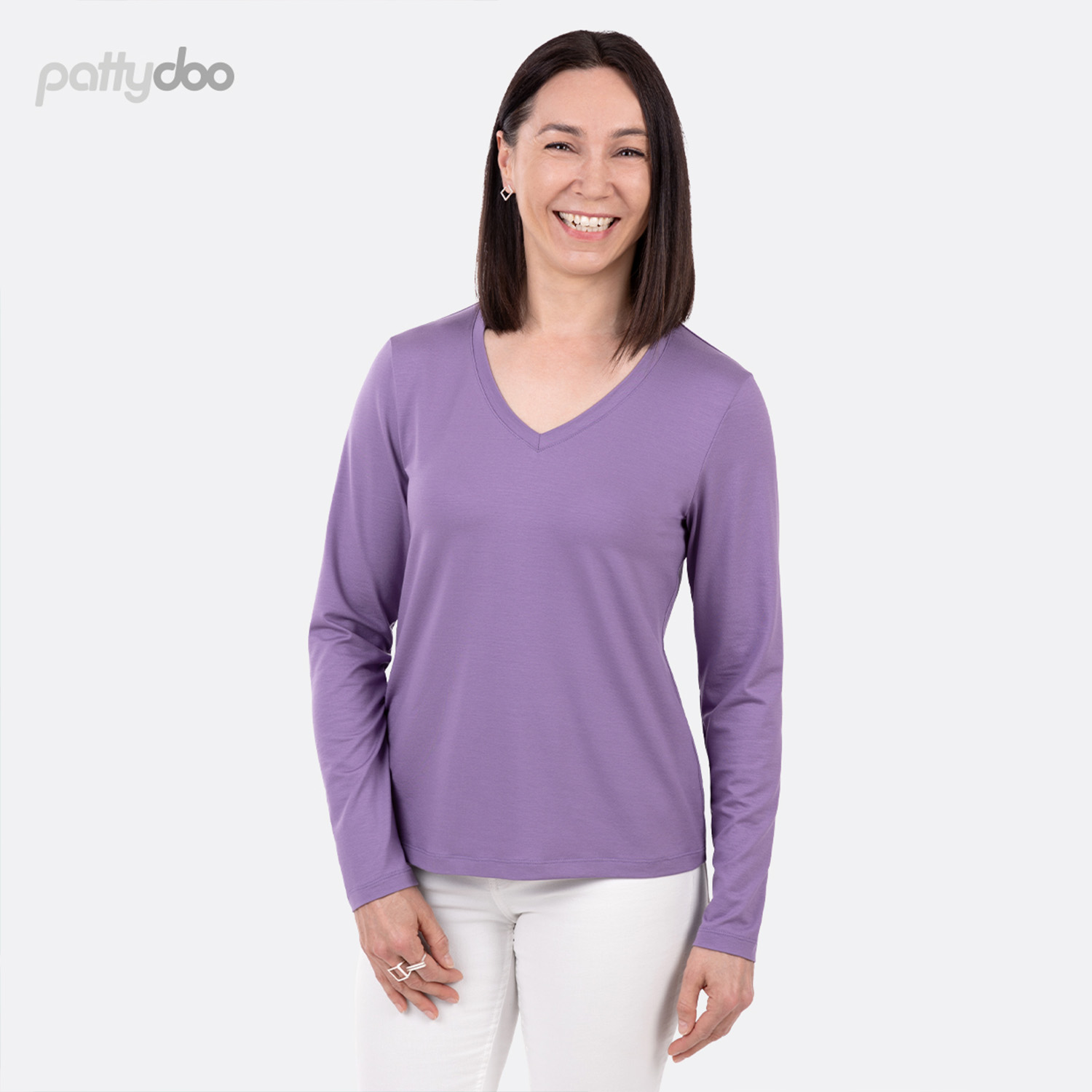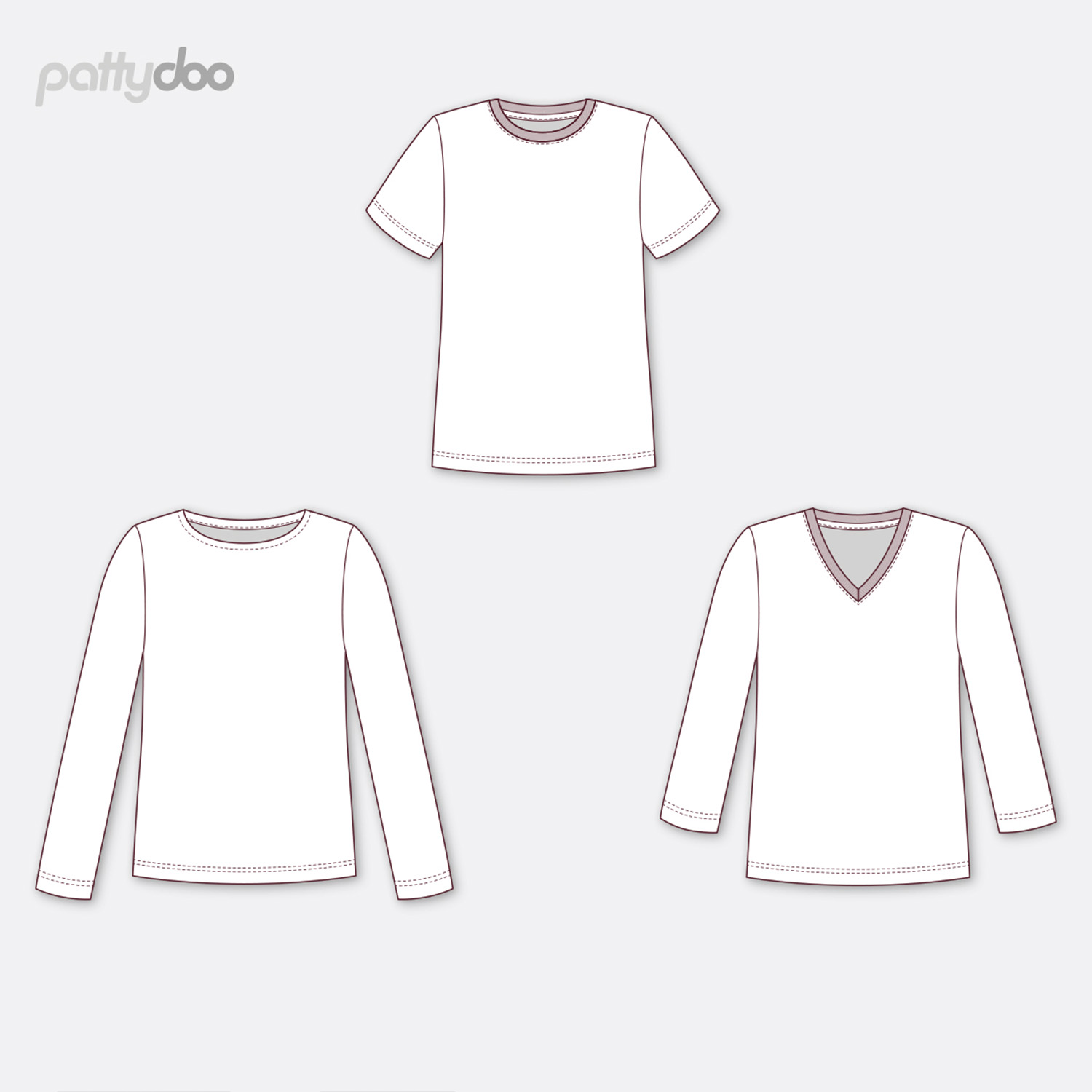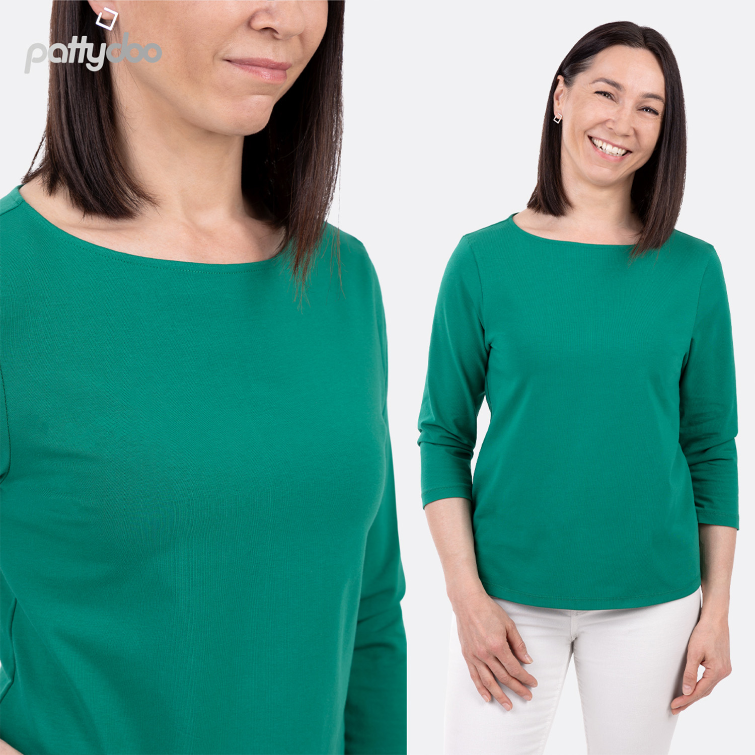 Du kannst zwischen drei verschiedenen Ausschnittformen wählen – klassischer Rundhalsausschnitt, schmeichelnder V-Ausschnitt oder eleganter U-Boot-Ausschnitt. In Kombination mit drei wählbaren Ärmellängen entstehen vielseitige Shirts und Longsleeves für das ganze Jahr: perfekt zu Jeans, gemütlich zur Leggings oder als cleane Basis unter Cardigan oder Blazer.