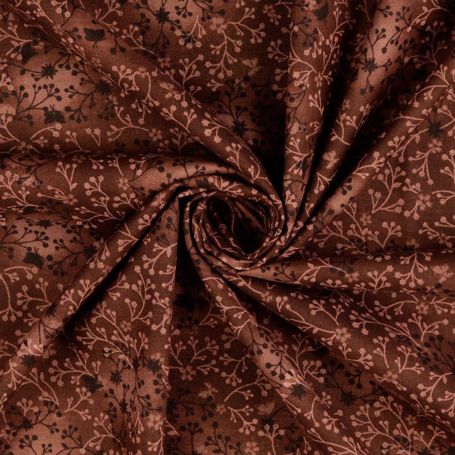 Ein zarter Schmetterlingstraum auf warmem Braun: Auf diesem Stoff tanzen filigrane Schmetterlinge zwischen verspielten Sternblüten und feinen Zweigen. Die dezenten Naturtöne reichen von Creme und Beige über sanfte Rosé- und Altrosa-Nuancen bis hin zu zartem Mint und hellem Blau – ein harmonisches Farbspiel, das sofort eine gemütliche, liebevolle Atmosphäre zaubert.