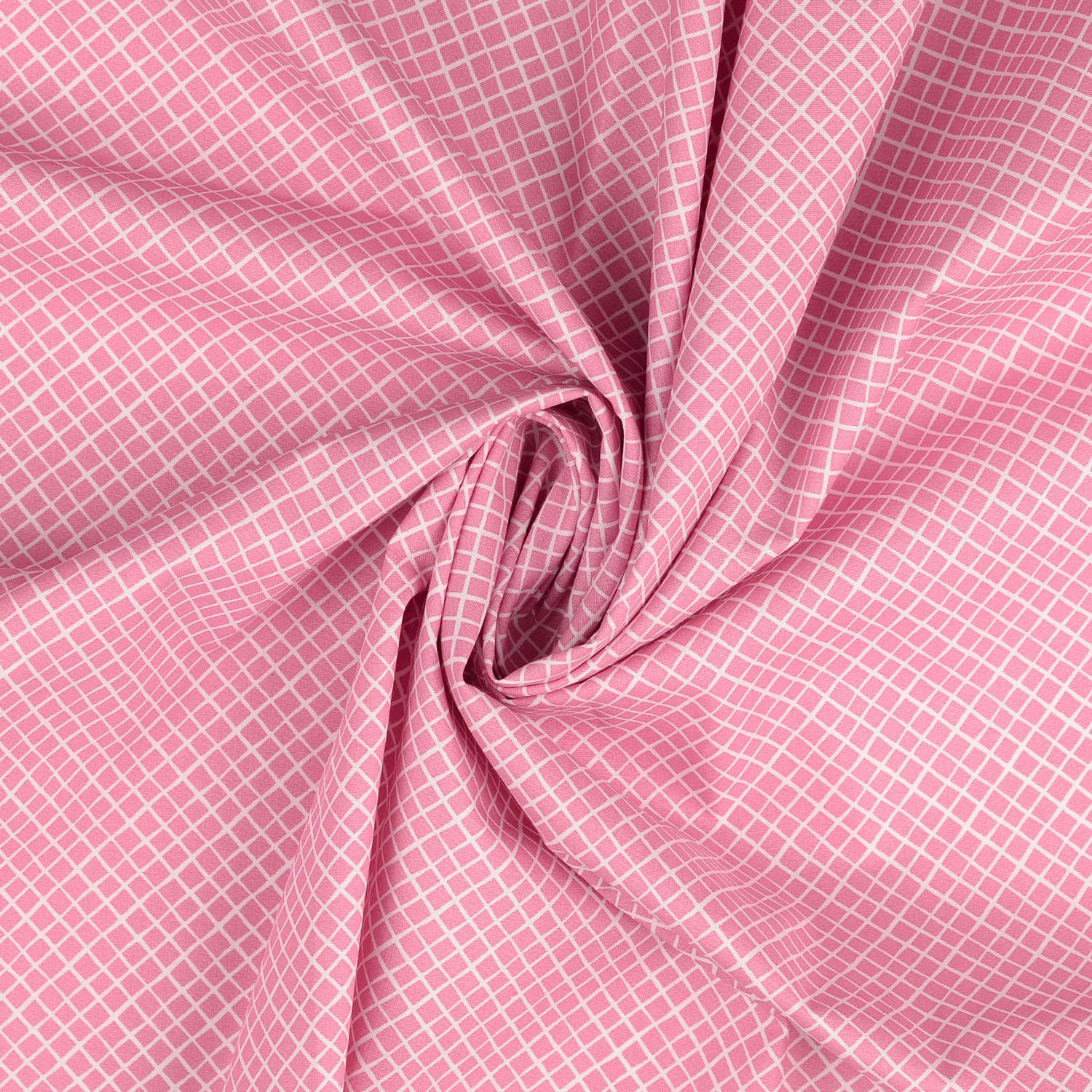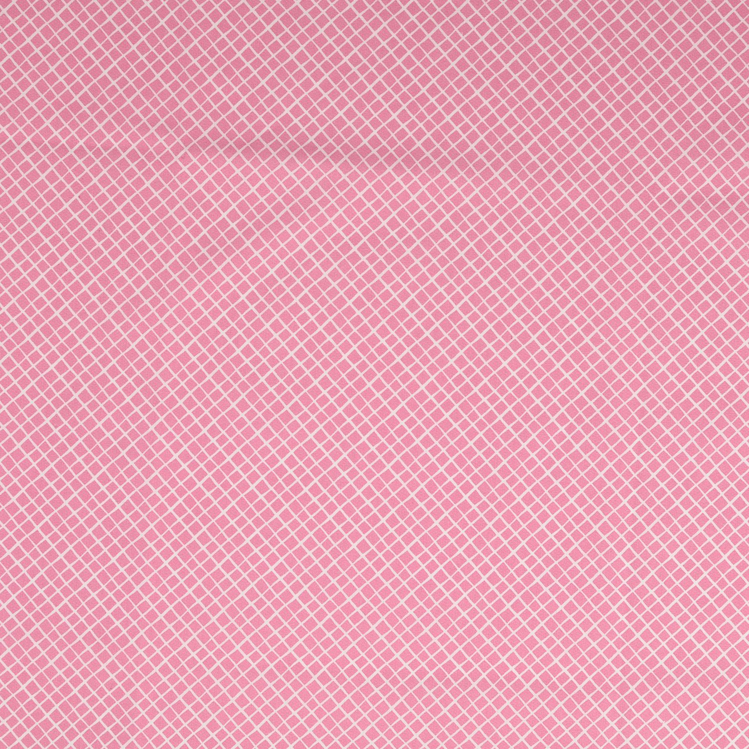 Ein zartes Altrosa trifft auf ein feines, grafisches Linienmuster: Bei diesem Stoff ziehen sich hauchdünne, gekreuzte Linien in Weiß über den Fond und bilden kleine Rauten und Quadrate – modern, klar und doch wunderbar verspielt. Das dezente Design wirkt elegant und ruhig, ohne jemals langweilig zu sein, und lässt sich hervorragend kombinieren.
