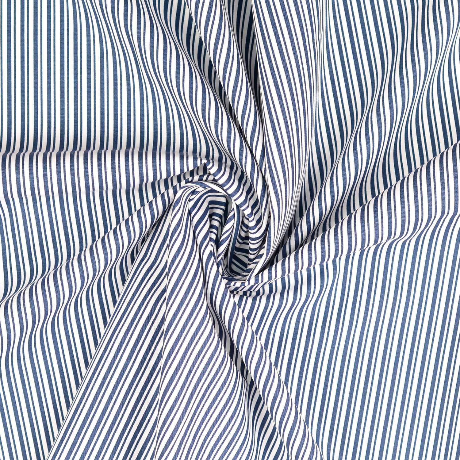 Feine, doppelte Streifen in klassischem Dunkelblau auf hellem Grund – dieser Stoff bringt zeitlose Eleganz in jedes Nähprojekt. Die zarten, schmalen Streifchen verleihen dem Design eine ruhige, klare Struktur, ohne aufdringlich zu wirken. So entsteht ein moderner, maritimer Look, der sich wunderbar kombinieren lässt.