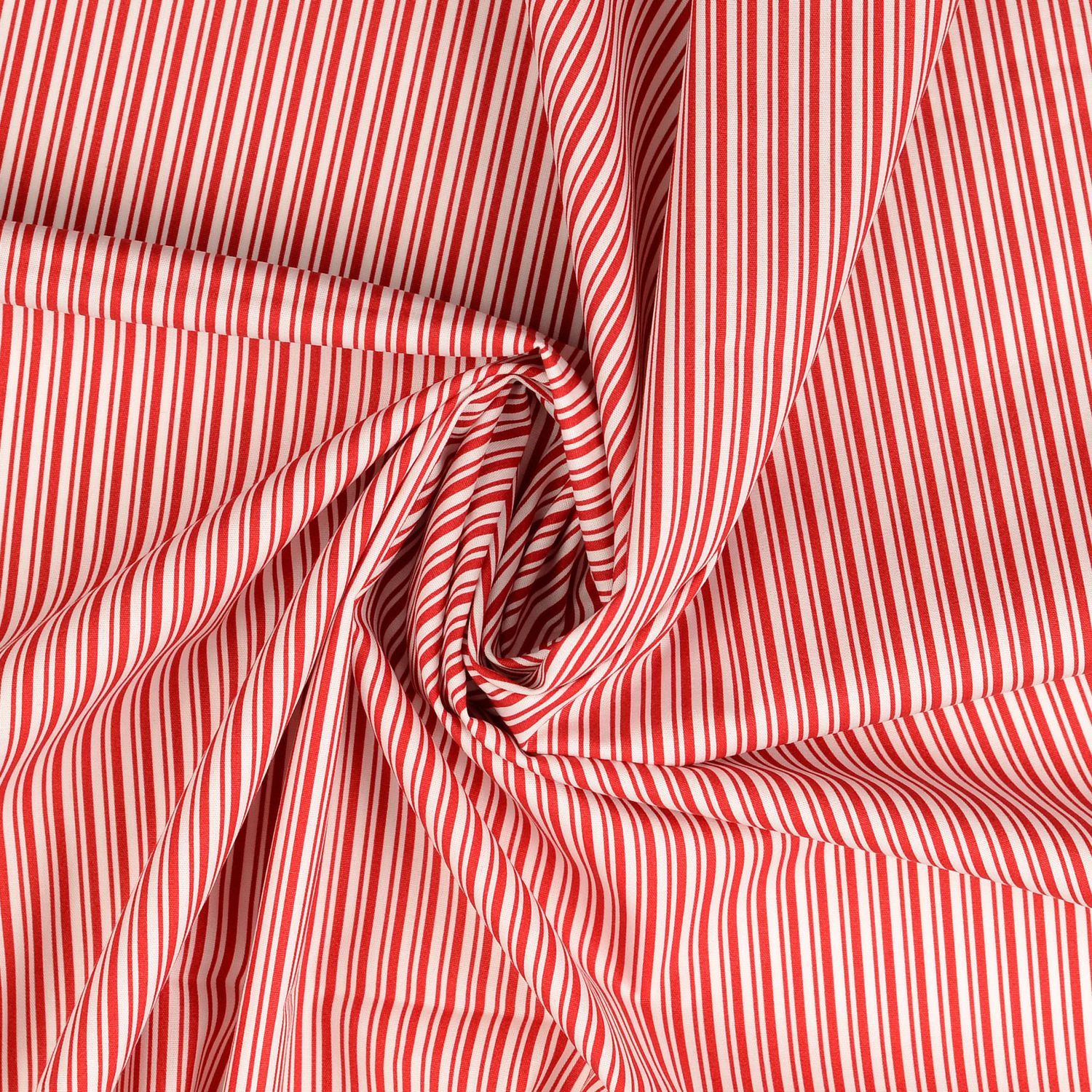 Feine Doppelstreifen in leuchtendem Rot und strahlendem Weiß verleihen diesem Stoff einen frischen, zeitlos klassischen Look. Die schmalen Streifchen wirken elegant und zugleich verspielt – perfekt für alle, die klare Muster und fröhliche Farben lieben.