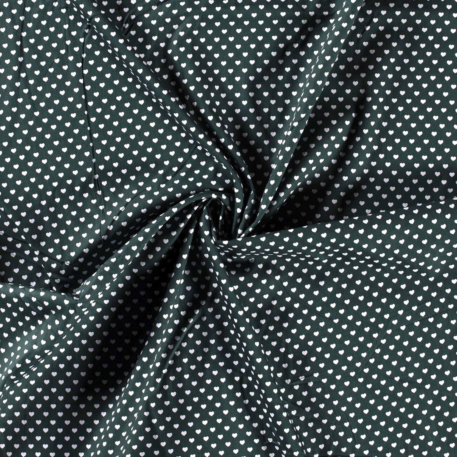 Ein zeitlos schöner Allrounder für deine Nähprojekte: Auf tiefem Dunkelgrün tummeln sich unzählige kleine, gleichmäßig angeordnete Herzchen und verleihen dem Stoff einen liebevollen, aber dennoch ruhigen Look. Durch die zarte Mini-Größe der Herzen wirkt das Design fein, modern und nicht zu verspielt – perfekt für Groß und Klein.