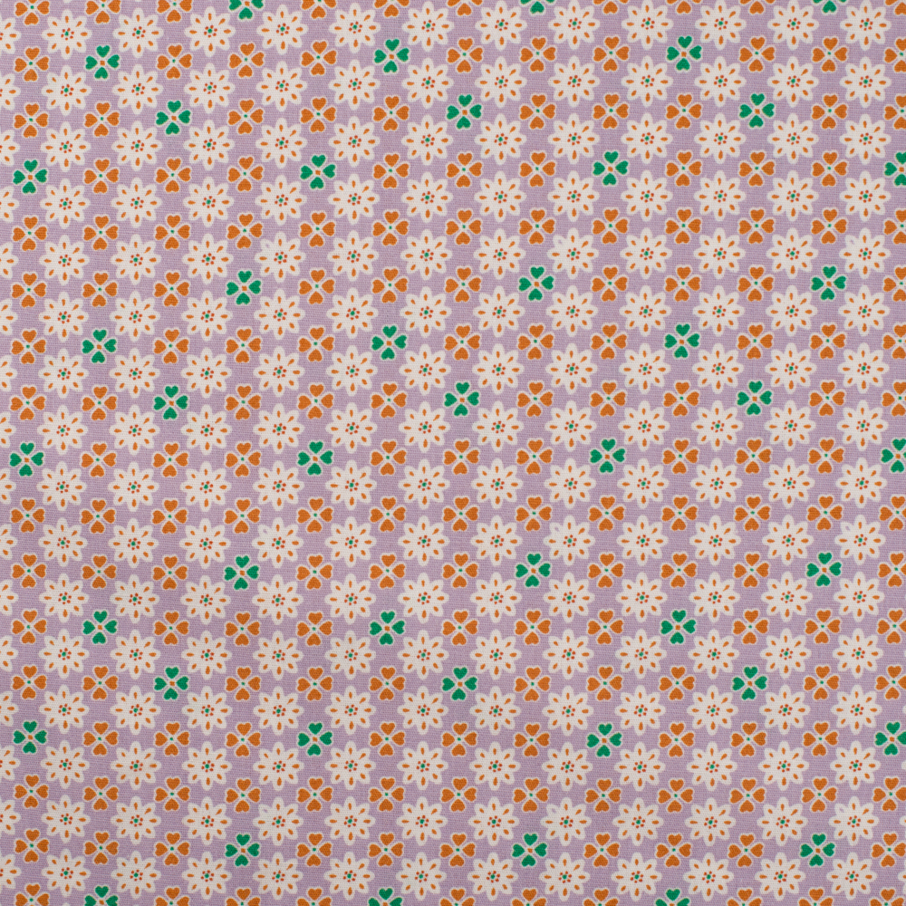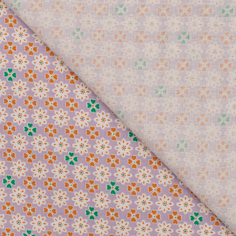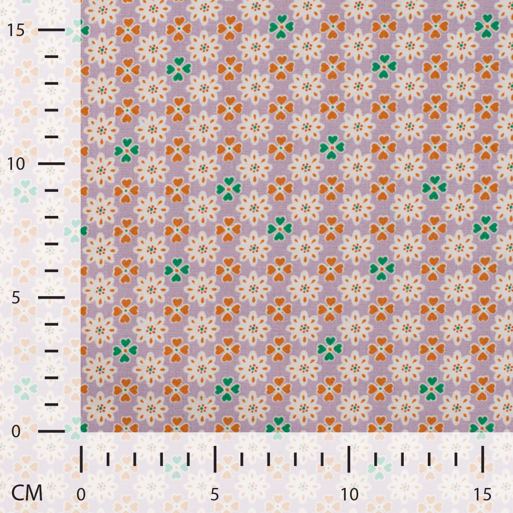 Ein zarter Hauch von Frühling: Auf diesem Stoff erblühen kleine Glücksblumen in sanften Flieder- und Rosétönen, begleitet von feinen Blättern in dezentem Grün. Der helle, freundliche Hintergrund lässt das verspielte Blumenmuster besonders schön zur Geltung kommen und verleiht dem Design eine frische, leichte Ausstrahlung.