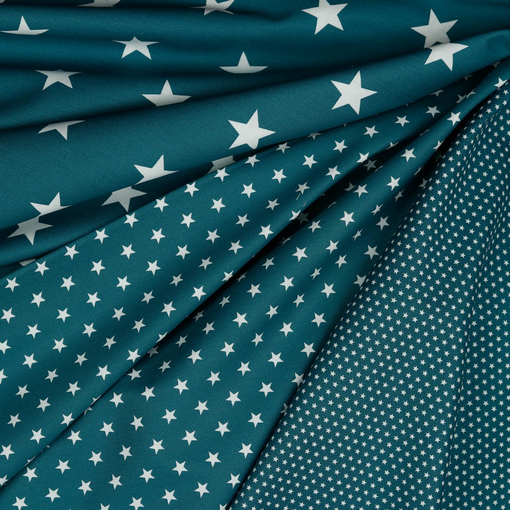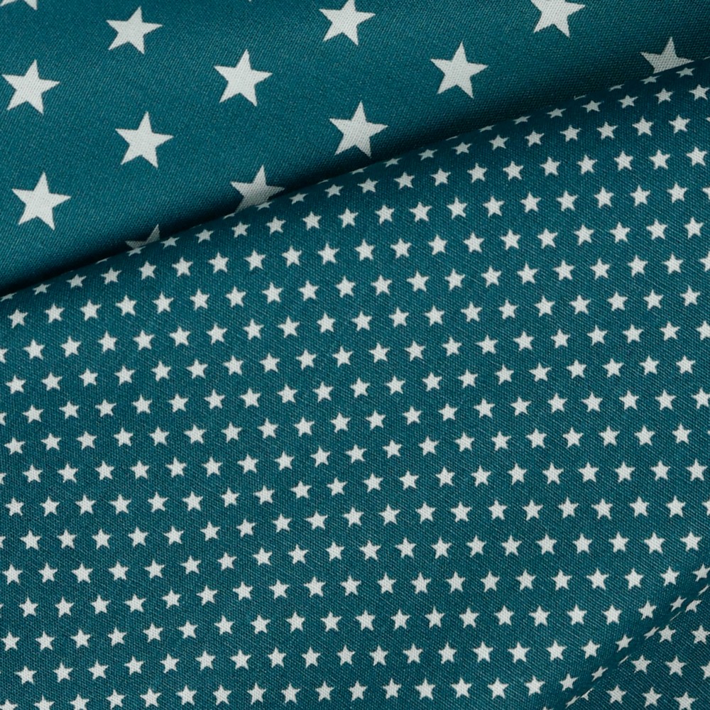 Baumwolle Popeline - Mini Sterne Petrol Weiß