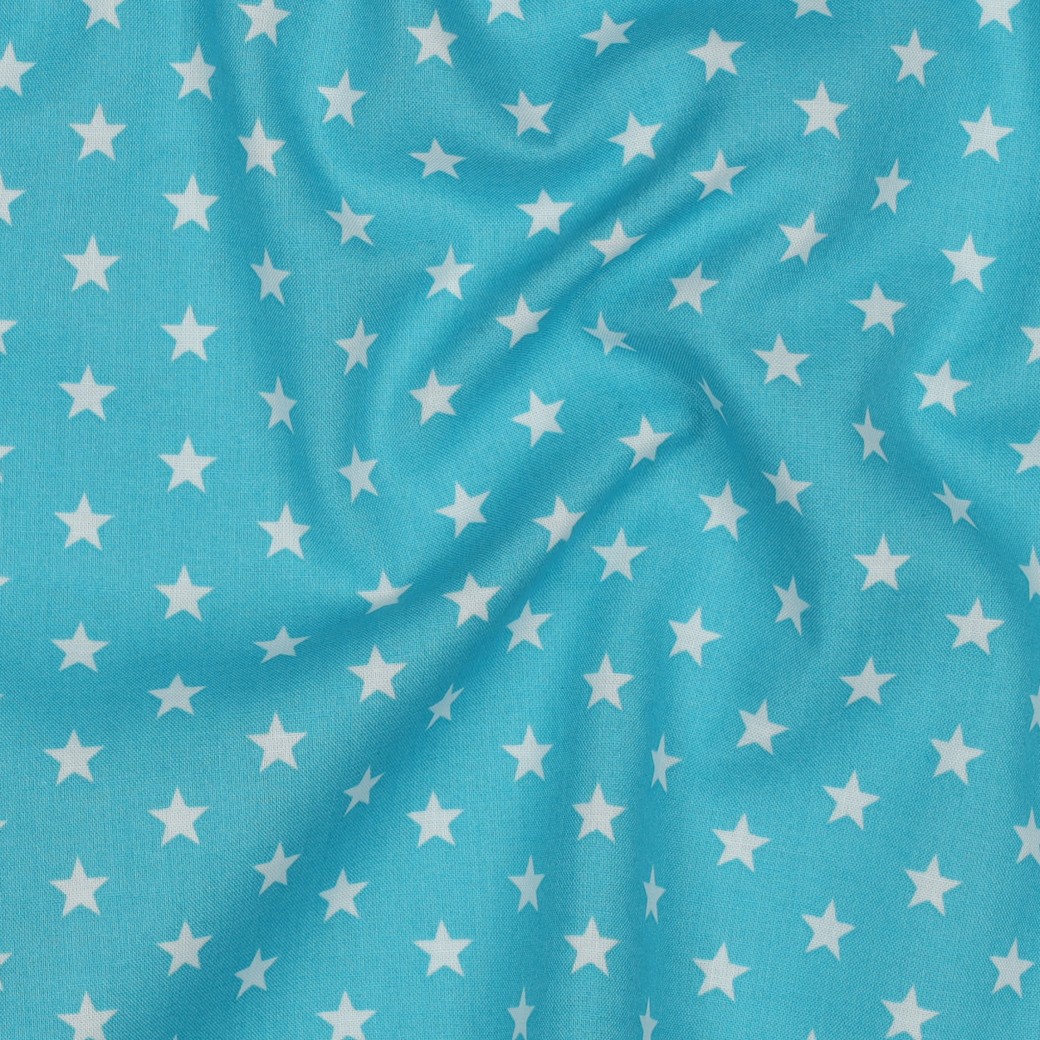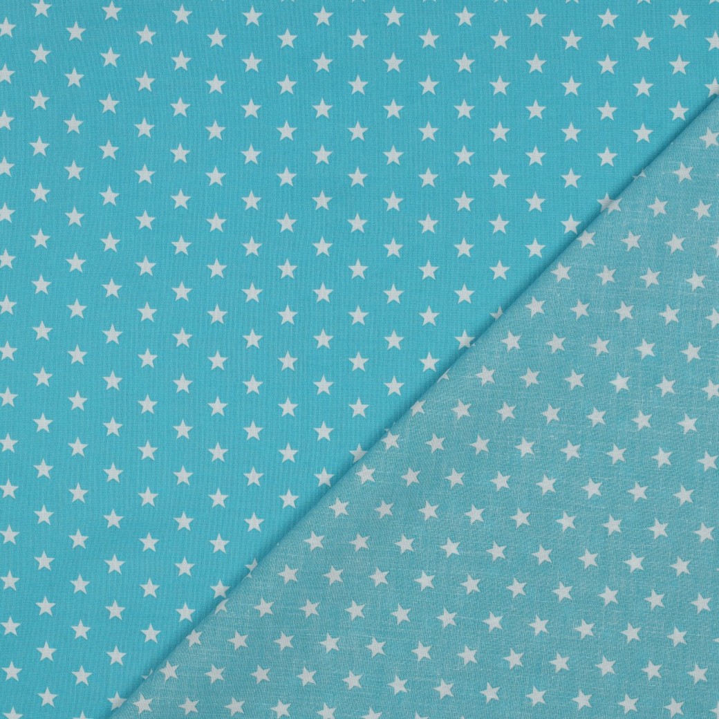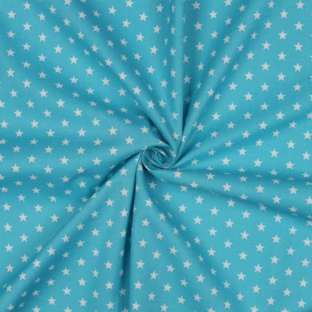 Baumwolle Popeline - Sterne Türkis Weiß