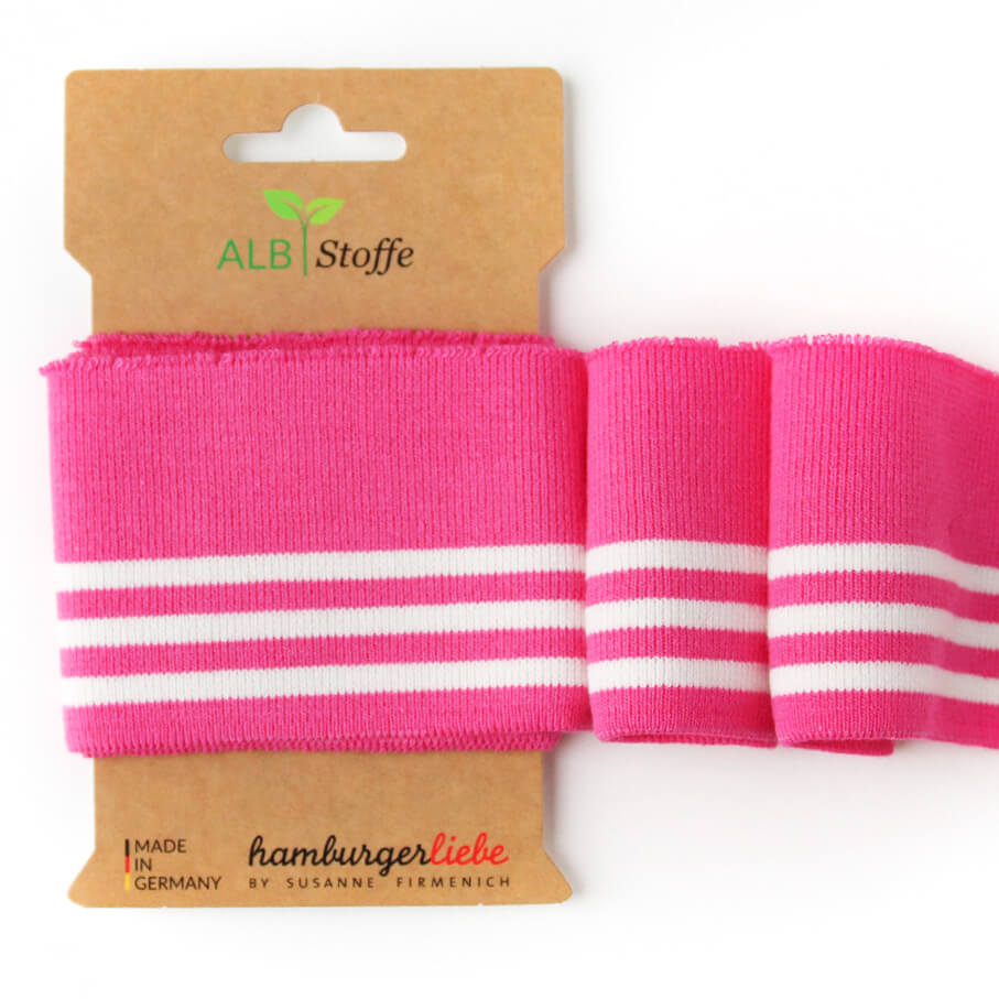 Das leuchtende Pink sorgt für einen fröhlichen Farbtupfer, während das reine Weiß den Look harmonisch ausgleicht – perfekt, um schlichte Basics aufzupeppen oder farbige Designs gekonnt abzurunden. Ob Sweatjacken, Hoodies, Kleider, Röcke oder Kindermode: Mit diesem Bündchen zauberst du im Handumdrehen professionelle Abschlüsse, die aussehen wie gekauft – nur viel schöner, weil selbstgenäht.