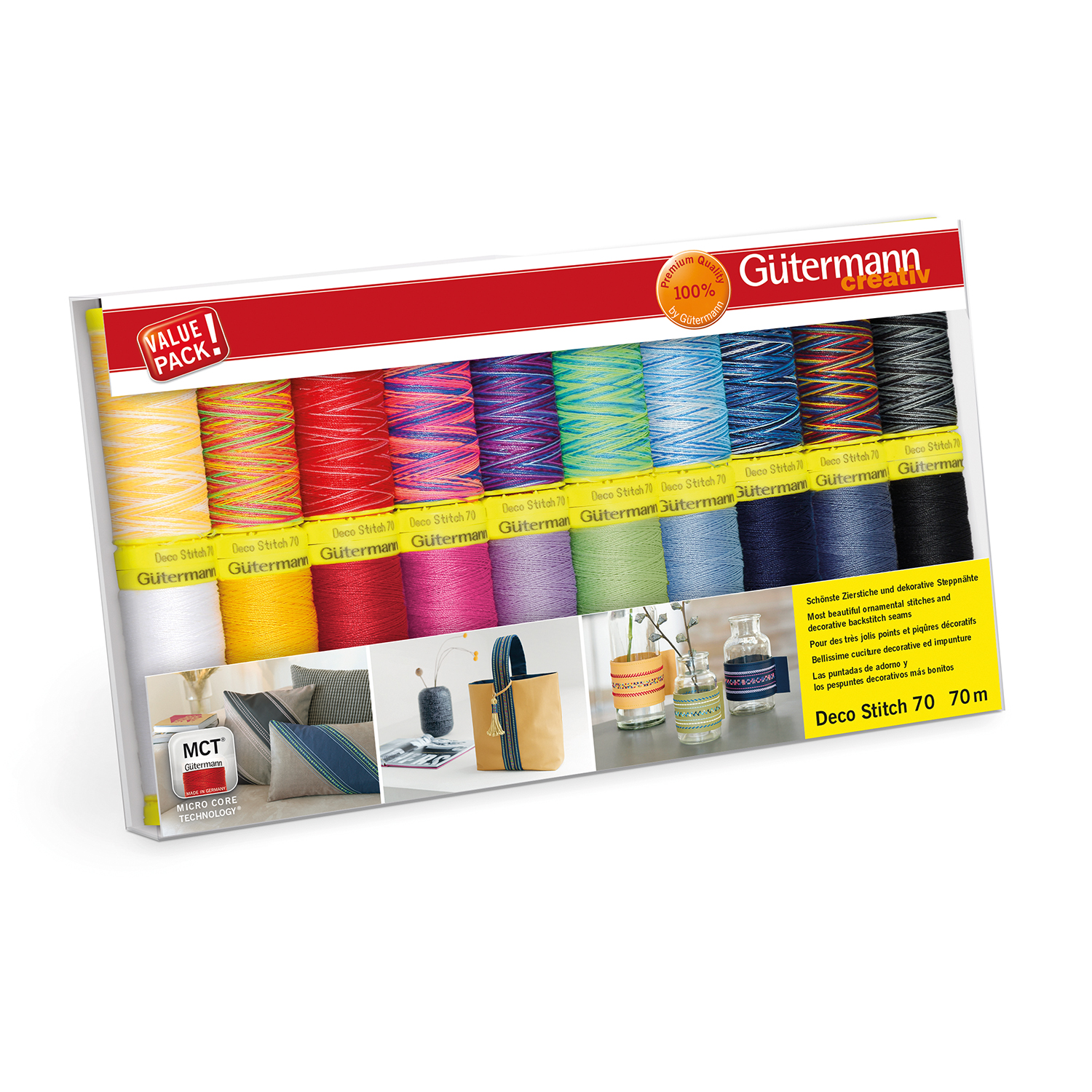 - 20 Spulen Gütermann Deko Stitch 70 à 70 m in sorgfältig aufeinander abgestimmten, zeitlos schönen Farben