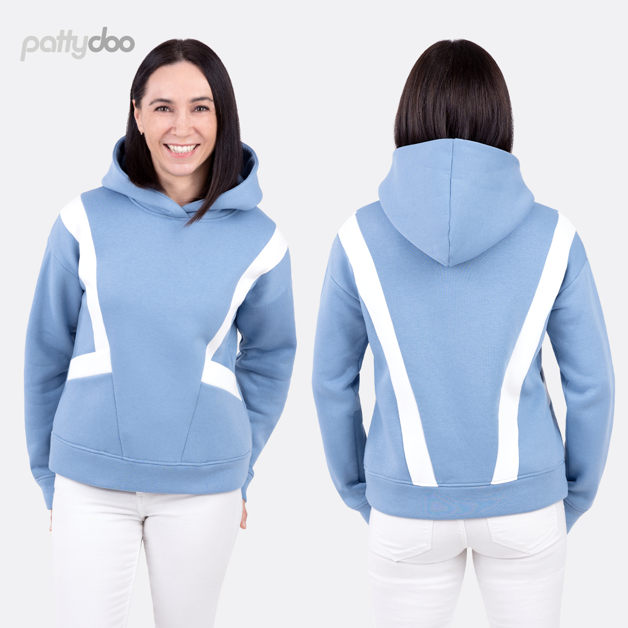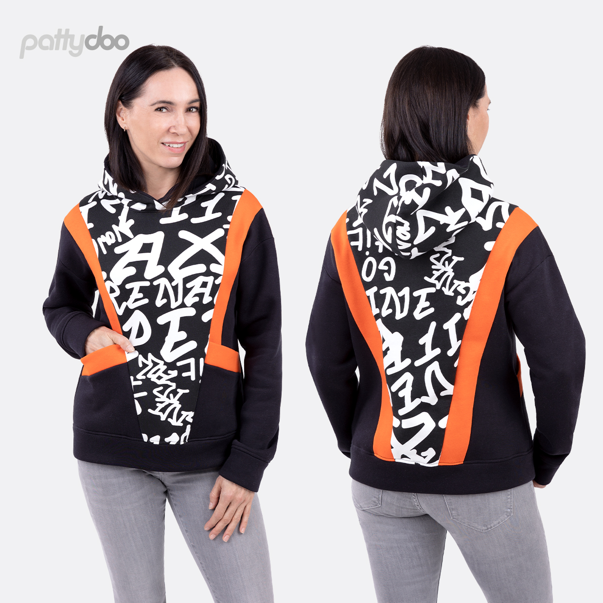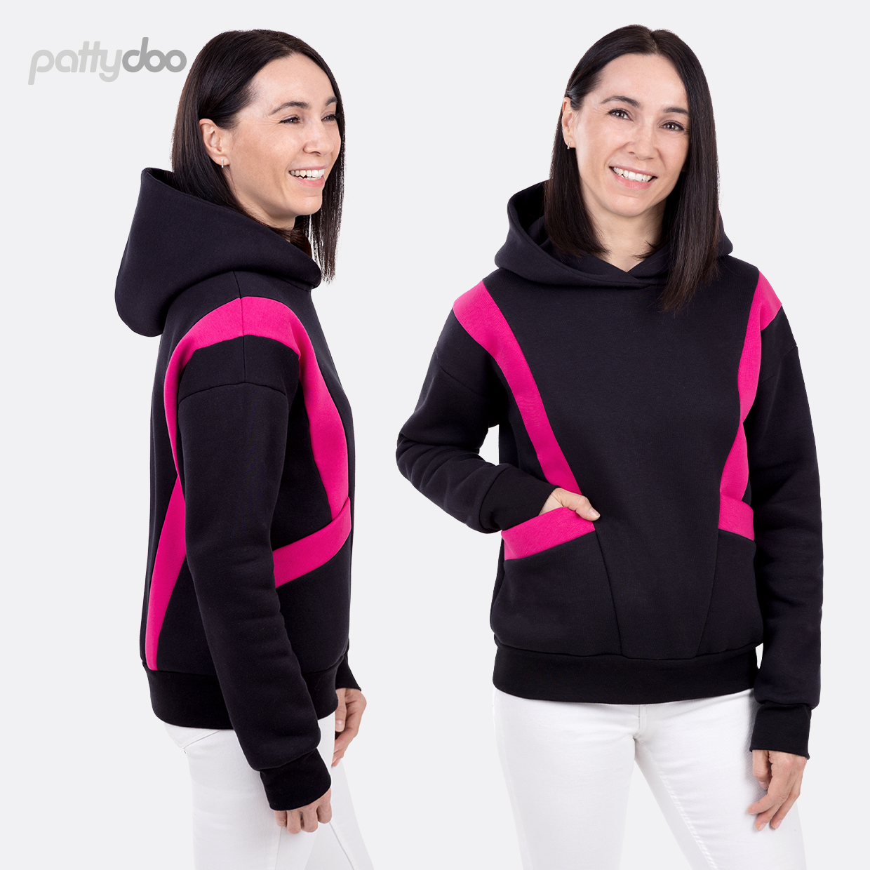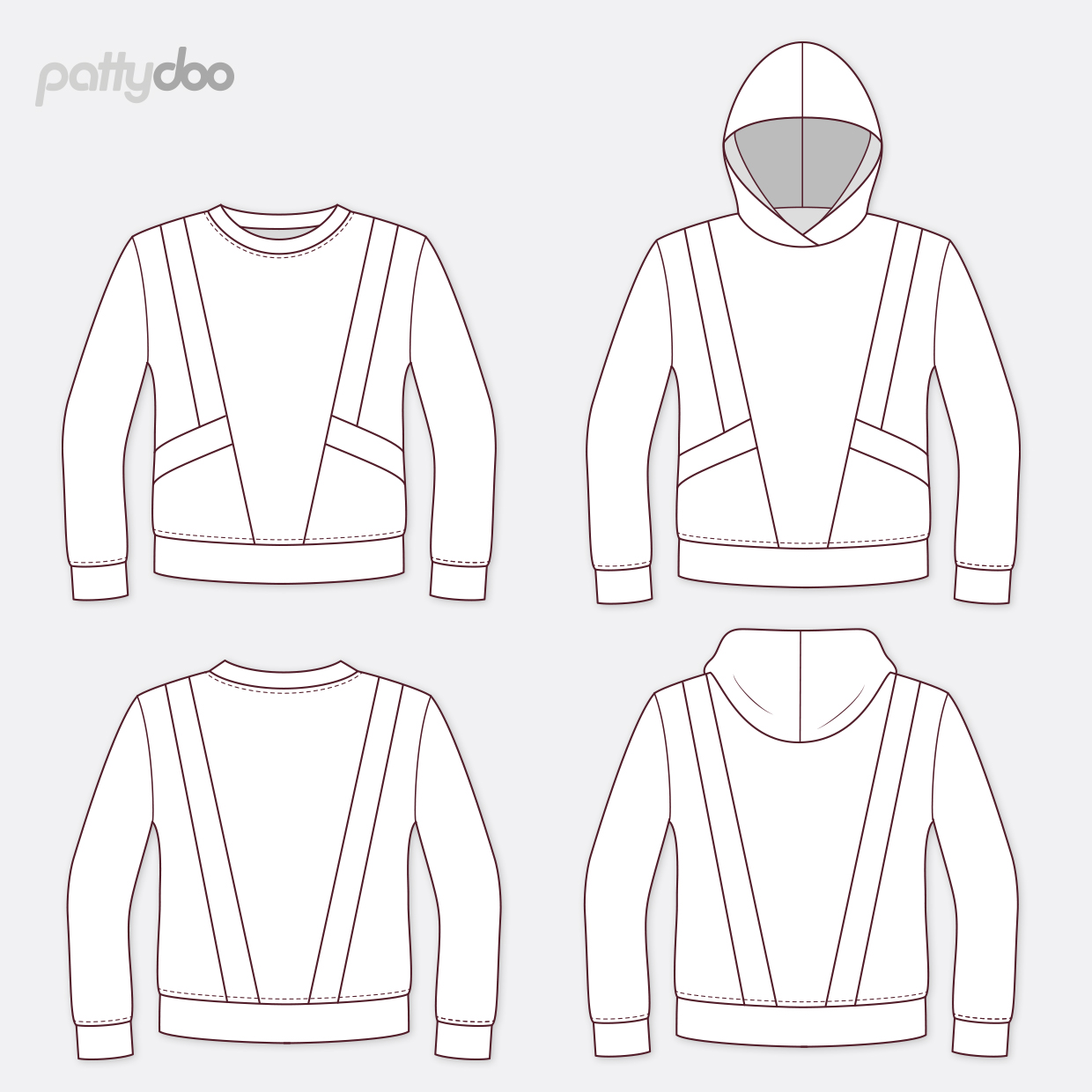 Mit diesem Hoodie- & Sweatshirt-Schnittmuster nähst du dir im Handumdrehen dein neues Wohlfühlteil – lässig, modern und herrlich kombinationsfreudig. Die markanten Teilungsnähte sorgen für eine coole Streifen-Optik, die du ganz nach Lust und Laune farblich gestalten kannst: Ton in Ton, starke Kontraste oder gemusterte Highlights – alles ist möglich.