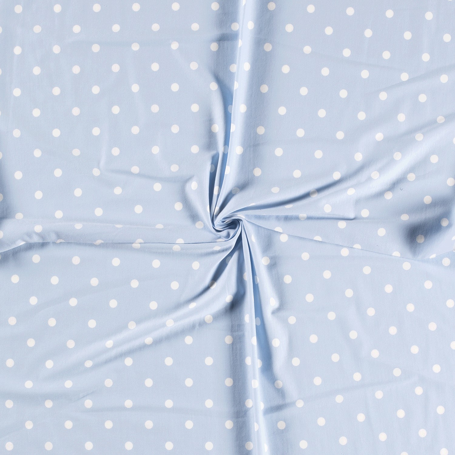 Zartes Hellblau trifft auf fröhliche Punkte: Dieser Jersey ist rundum übersät mit gleichmäßigen, weißen Dots, die ihm einen verspielten und zugleich zeitlosen Look verleihen. Das feine Punktmuster wirkt leicht und modern – perfekt für alle, die schlichte Designs mit einem Hauch von Pep lieben.