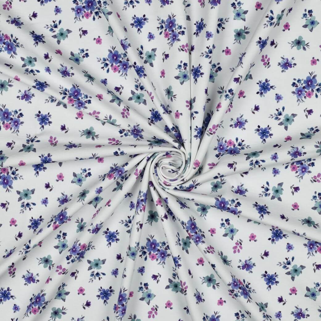 Jersey - Digital Kleine Blumen Ecru Violett