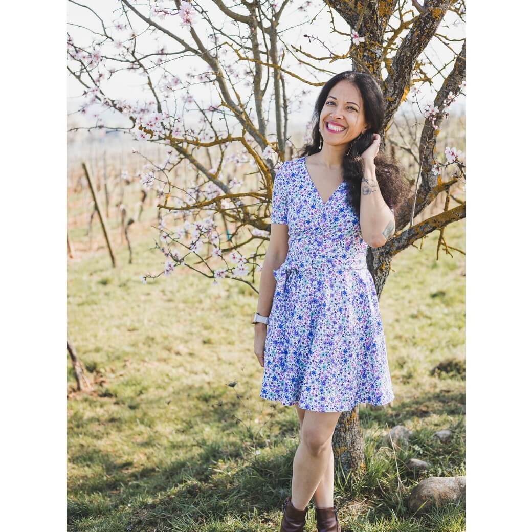 Zarter Jersey mit liebevoll gestaltetem, digital gedrucktem Blumenmuster: Auf einem hellen Ecru-Grund ranken sich kleine Blüten in sanften Violett- und Fliedertönen, begleitet von feinen Blättern und zarten Details. Die Farben wirken harmonisch und feminin, ohne zu aufdringlich zu sein – perfekt für einen romantischen, leichten Look. Der Stoff fühlt sich weich auf der Haut an, ist angenehm elastisch und macht jede Bewegung mühelos mit. Durch seinen schönen Fall und die glatte Oberfläche entsteht ein gepflegtes, hochwertiges Erscheinungsbild – ideal für komfortable Kleidung mit einem Hauch verspielter Eleganz.