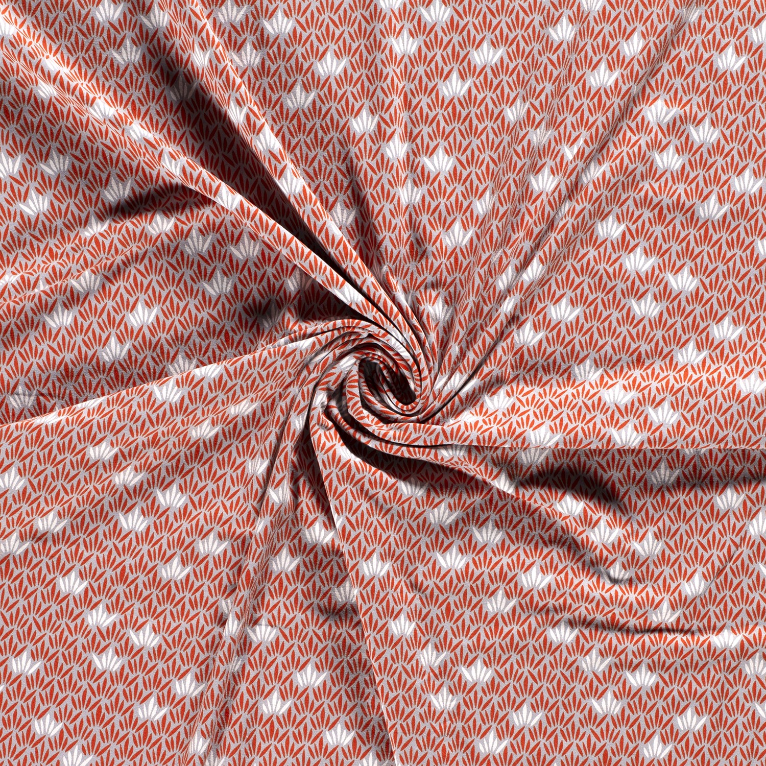 Zart wie ein Sommerwind und doch ausdrucksstark im Design: Auf einem sanften Grau tanzen feine Gräser und Zweige in warmem Rostorange über den Stoff. Die filigranen Blätter wirken fast wie handgezeichnet und verleihen dem Jersey eine natürliche, ruhige Eleganz – perfekt für alle, die dezente Muster mit besonderem Charme lieben.