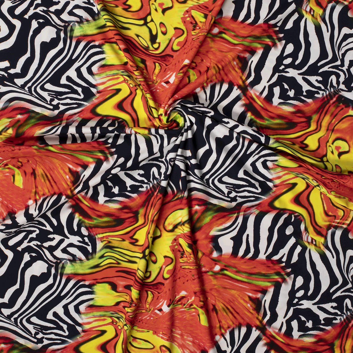 Ein Stoff wie ein modernes Kunstwerk: Auf warmem Weiß tanzen leuchtende Orange- und Apricot-Töne in lässigen Pinselstrichen und Aquarellflecken über den Jersey. Zarte Farbverläufe, kleine Sprenkel und der handgemalte Look verleihen dem Design eine kreative, lebendige Ausstrahlung – perfekt für alle, die es individuell und künstlerisch mögen.