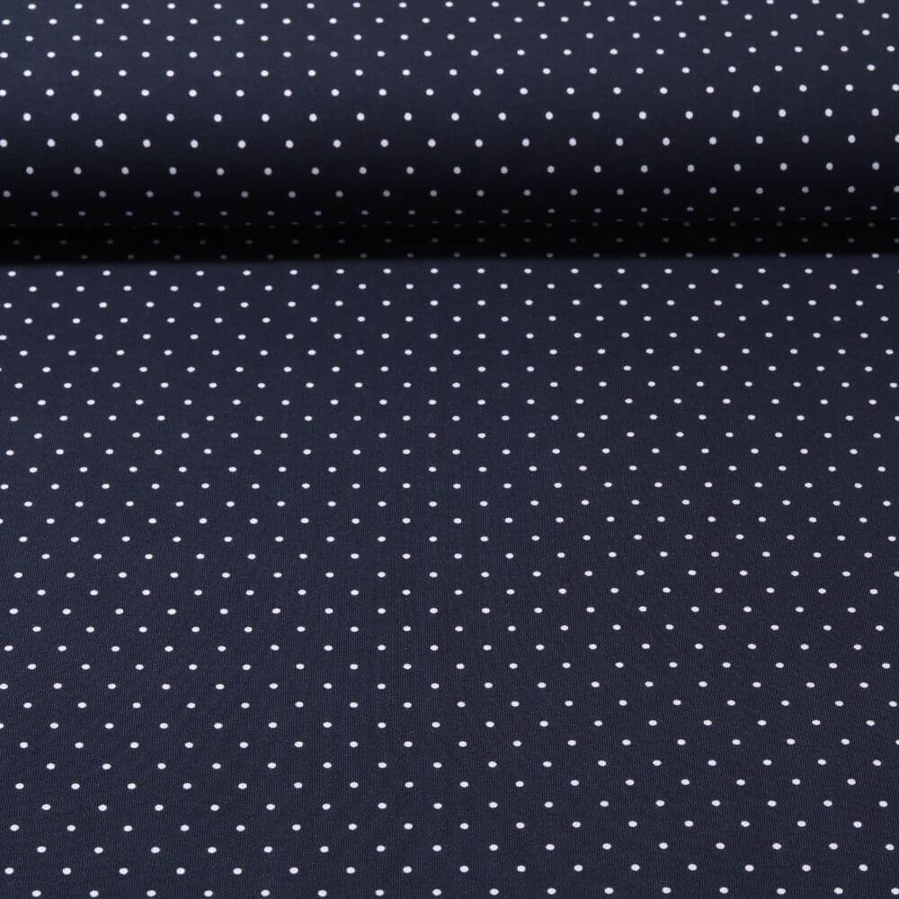 Zeitlos, fröhlich und wunderbar kombinierbar: Dieser Jersey in tiefem Navyblau wird von gleichmäßig verteilten, kleinen weißen Punkten verziert und zaubert im Handumdrehen einen klassischen Polka-Dot-Look.