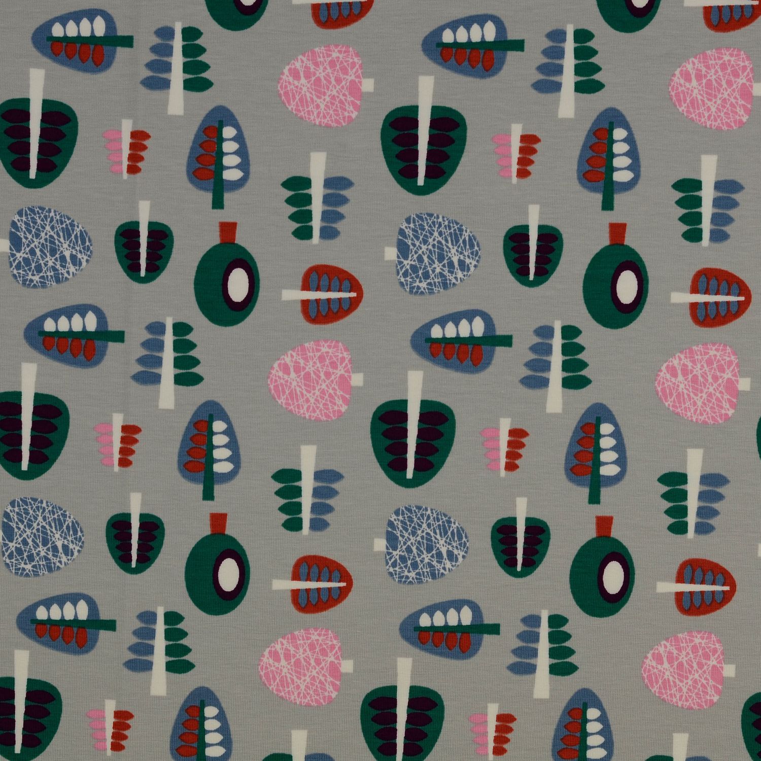 Jersey Retro Bäume auf Hellgrau