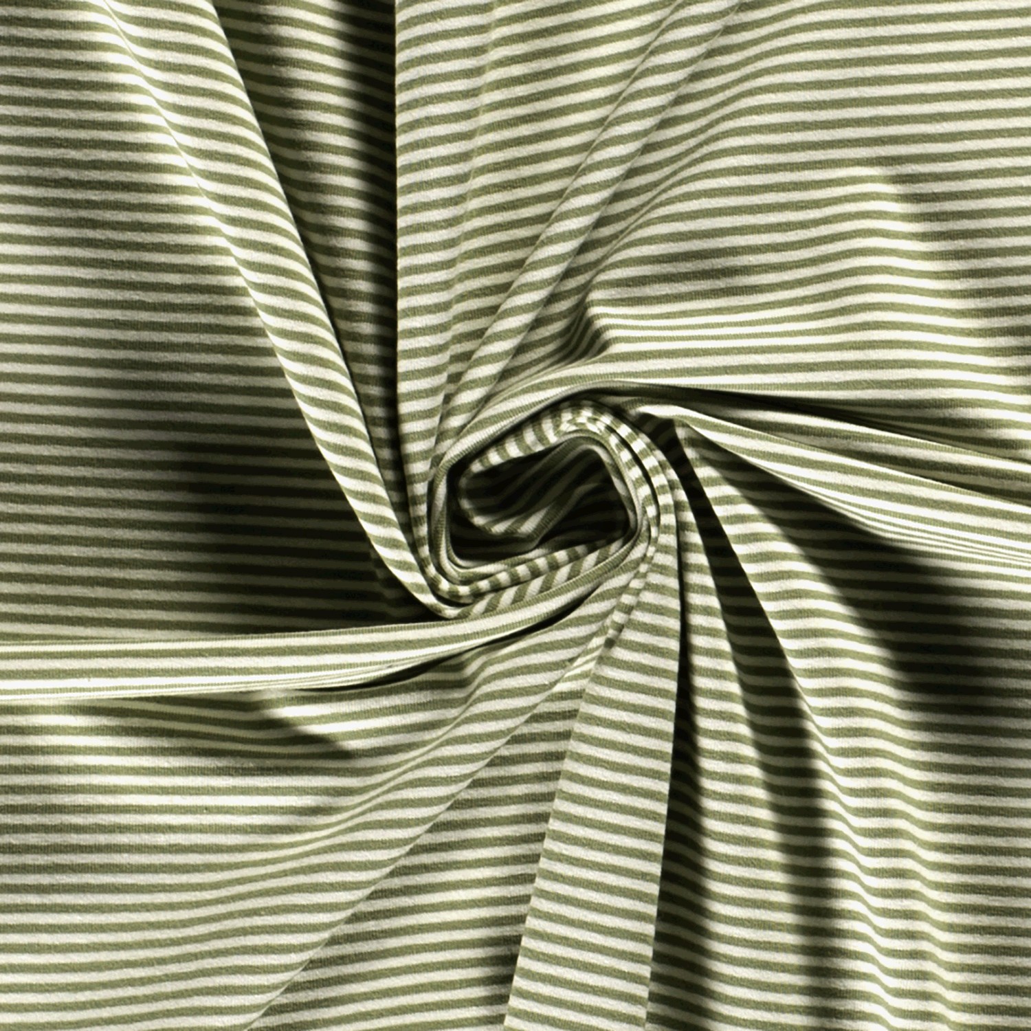 Da die Streifen direkt im Stoff angelegt und nicht aufgedruckt sind, wirkt das Dessin besonders hochwertig und bleibt auch nach vielen Wäschen schön. Der Stoff ist angenehm weich auf der Haut, elastisch in beide Richtungen und macht jede Bewegung mühelos mit – perfekt für bequeme Basics für Groß und Klein.