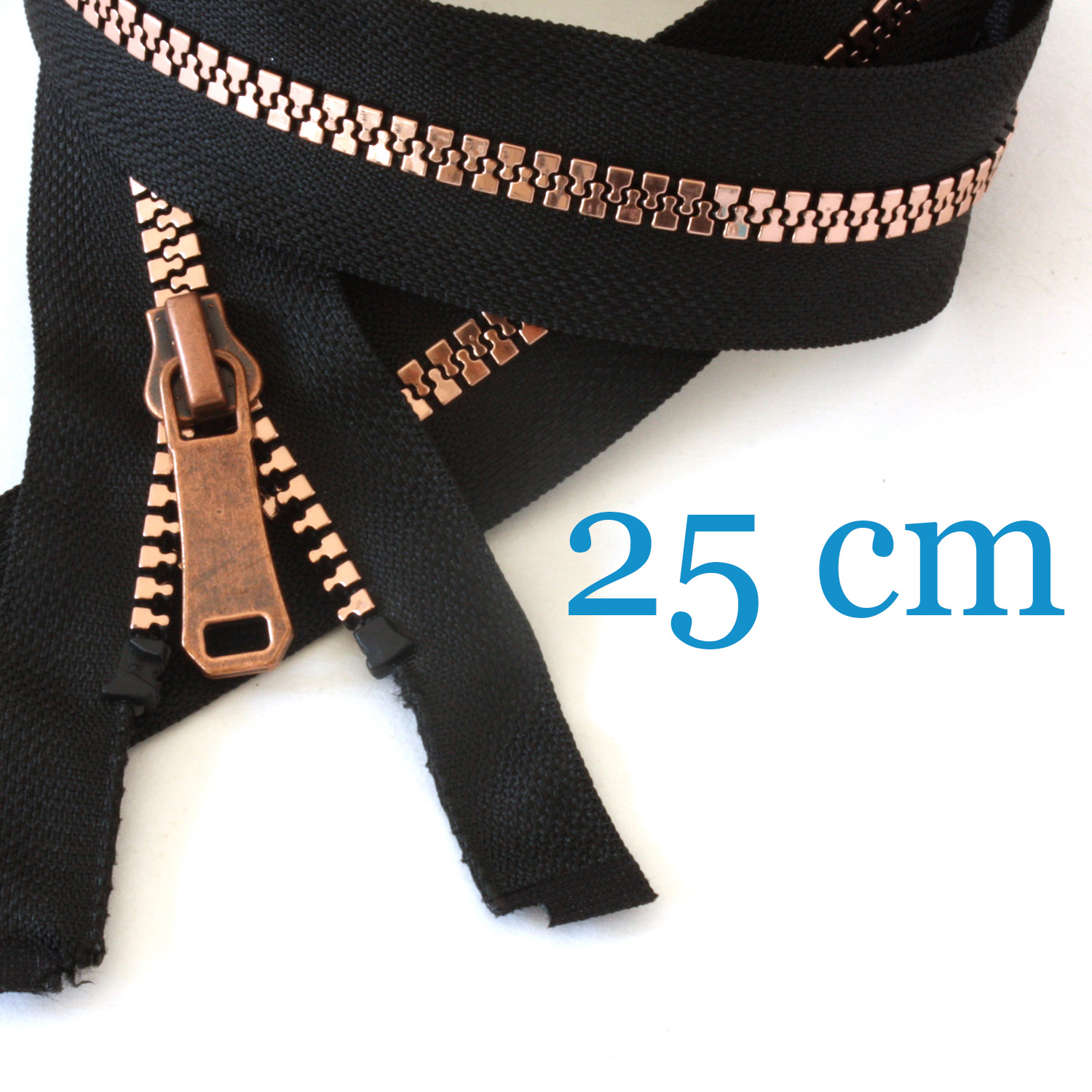 Kupfer metallisierter Jacken Reißverschluss teilbar 25 cm