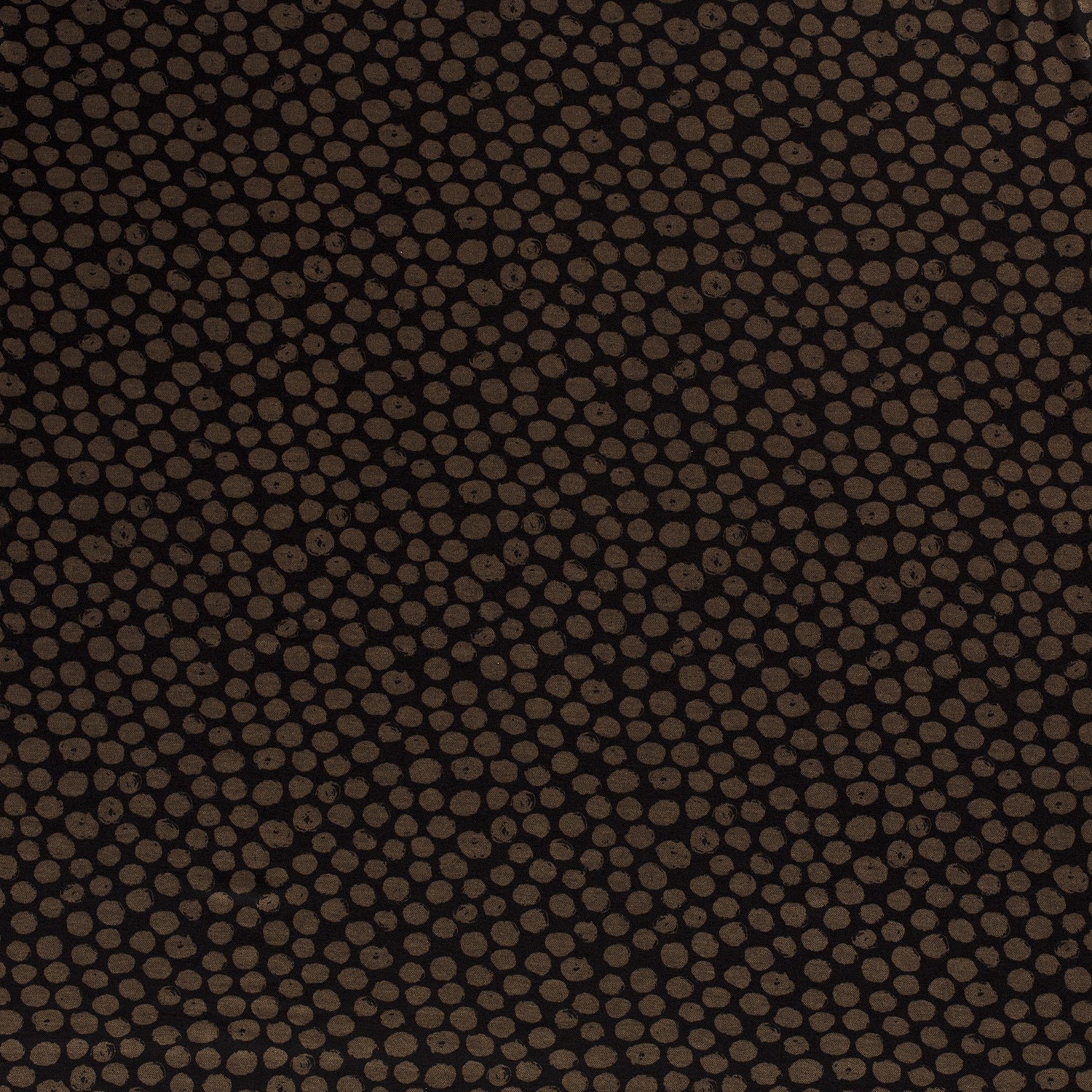 Ein Stoff wie gemacht für stilvolle Auftritte: Auf tiefschwarzem Hintergrund tanzen unzählige kleine Punkte in edlem Oliv – mal dichter beieinander, mal mit etwas mehr Abstand, sodass ein lebendiges, aber dennoch ruhiges Gesamtbild entsteht.
