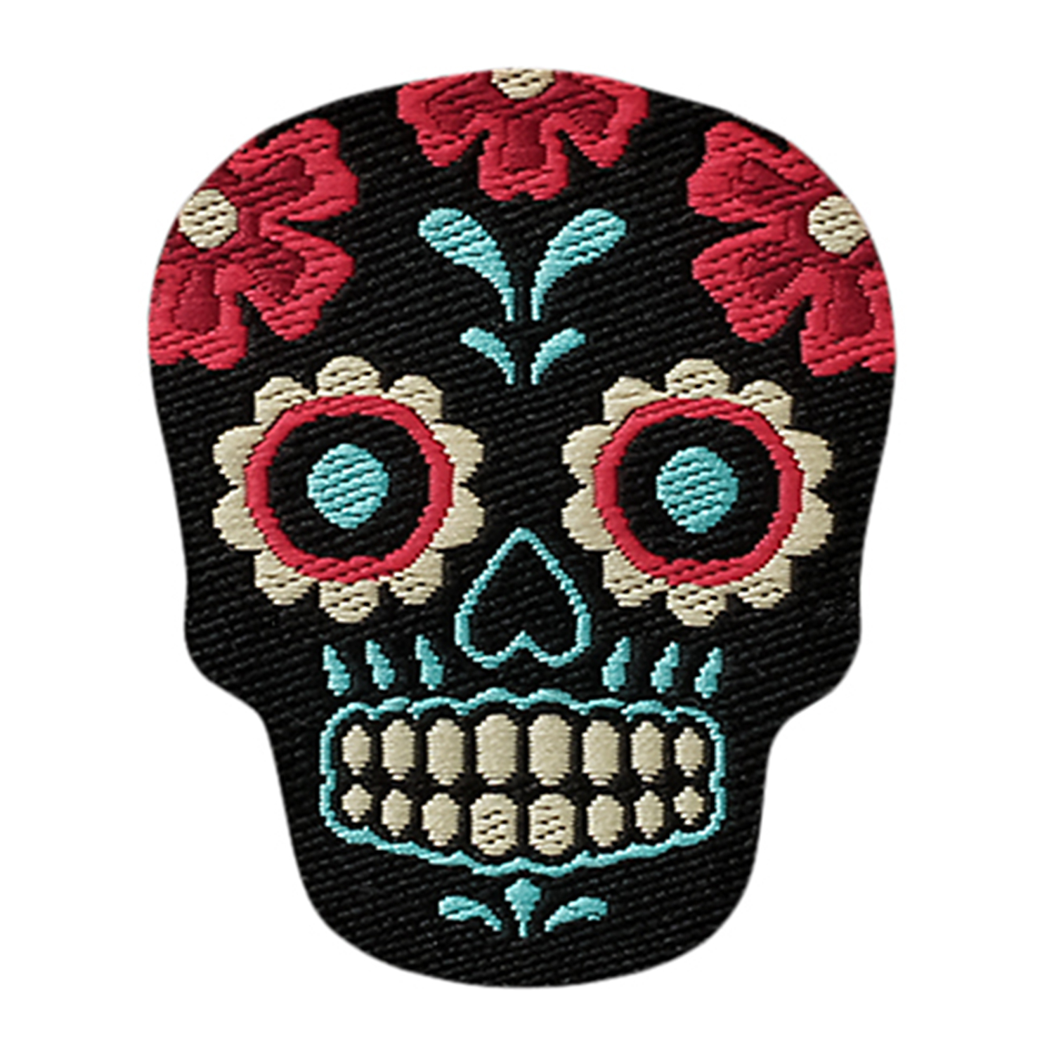 Dieser kleine Patch im Muertos-Style ist ein echter Blickfang: Auf tiefschwarzem Hintergrund leuchtet ein kunstvoll verzierter Totenkopf in kräftigem Pink. Zarte Ornamente und verspielte Details geben dem Motiv seinen typischen Día-de-los-Muertos-Charme und machen es zum perfekten Highlight für Jacken, Jeans, Rucksäcke, Caps oder Beutel.
