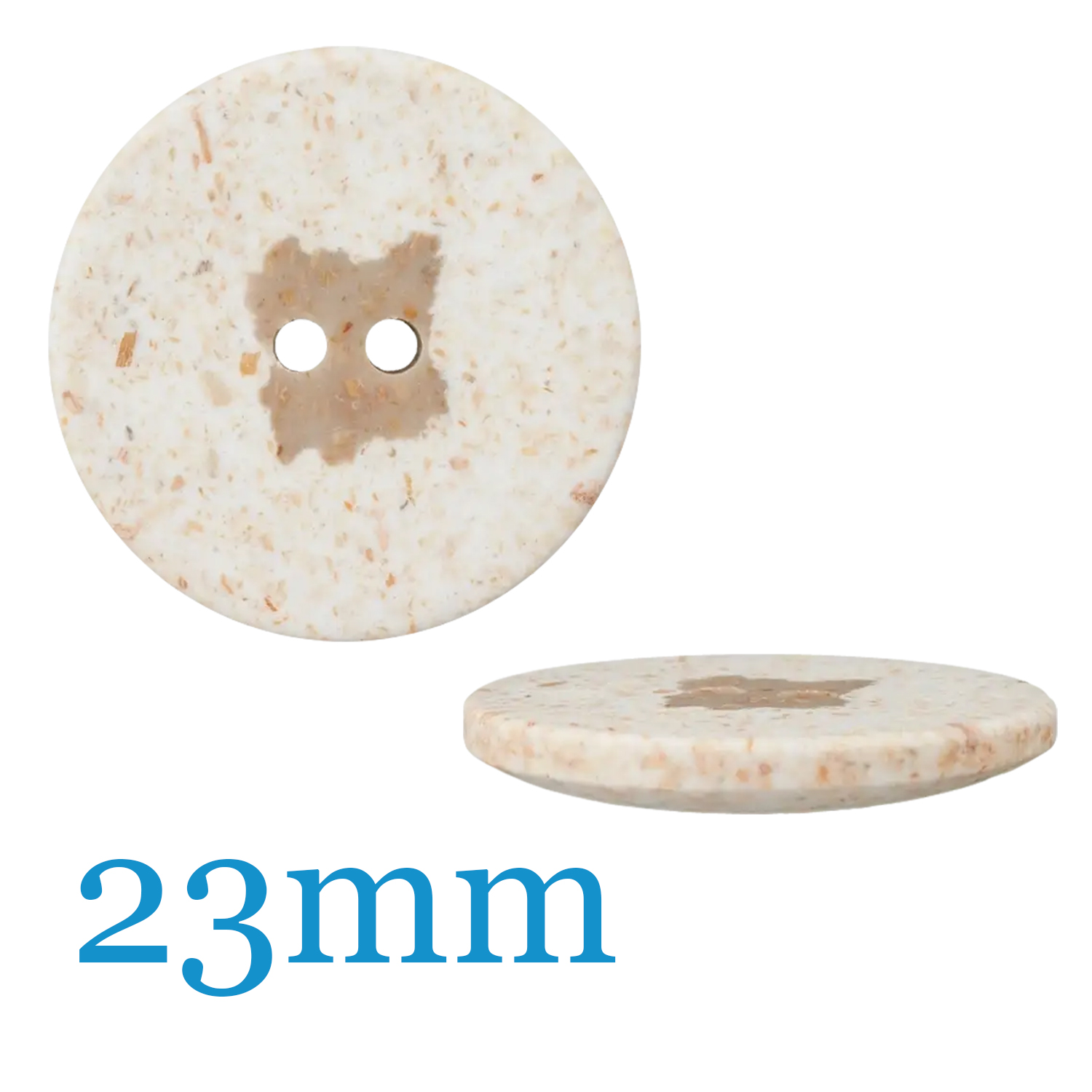 Dieser schlichte, runde 2-Loch-Knopf in warmem Creme-Ton mit dezenten Sprenkeln bringt eine natürliche, leicht melierte Optik in deine Nähprojekte. Die sanfte Farbgebung lässt sich wunderbar kombinieren – ob mit hellen Naturtönen, kräftigen Farben oder gemusterten Stoffen.