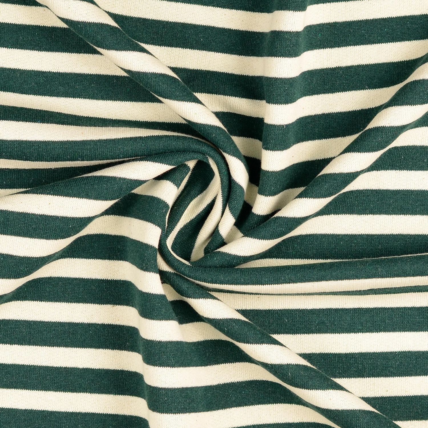 Dieser kuschelig angeraute Sweat mit 10-mm-Streifen in Grün und Ecru ist wie gemacht für alle, die den lässigen Vintage-Look lieben. Die leicht verwaschene, gedeckte Grüntonung trifft auf weiche Ecru-Streifen und verleiht dem Stoff eine wunderbar entspannte, retro-inspirierte Ausstrahlung.