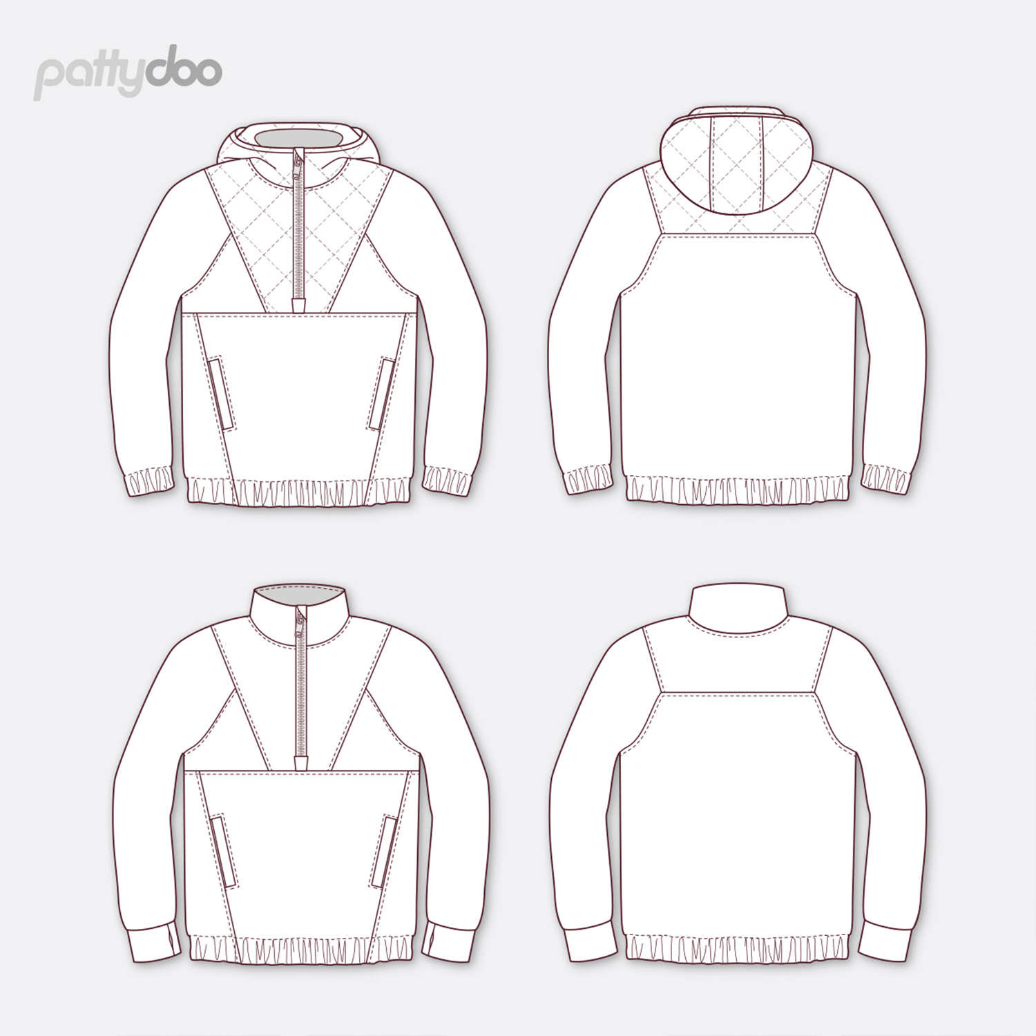 Du hast die Wahl zwischen einer gemütlichen Kapuze für kühle Tage oder einem lässigen Stehkragen für den sportlichen Look. Die schrägen Teilungsnähte geben dem Pullover eine moderne, dynamische Linienführung und laden zum kreativen Stoffmix ein: Kombiniere zum Beispiel schlichte Uni-Stoffe mit abgesteppten Partien aus Doubleface-Steppstoff oder setze farbige Kontraste in den Einsätzen. Für besonders warme Varianten eignet sich auch kuscheliger Wintersweat.