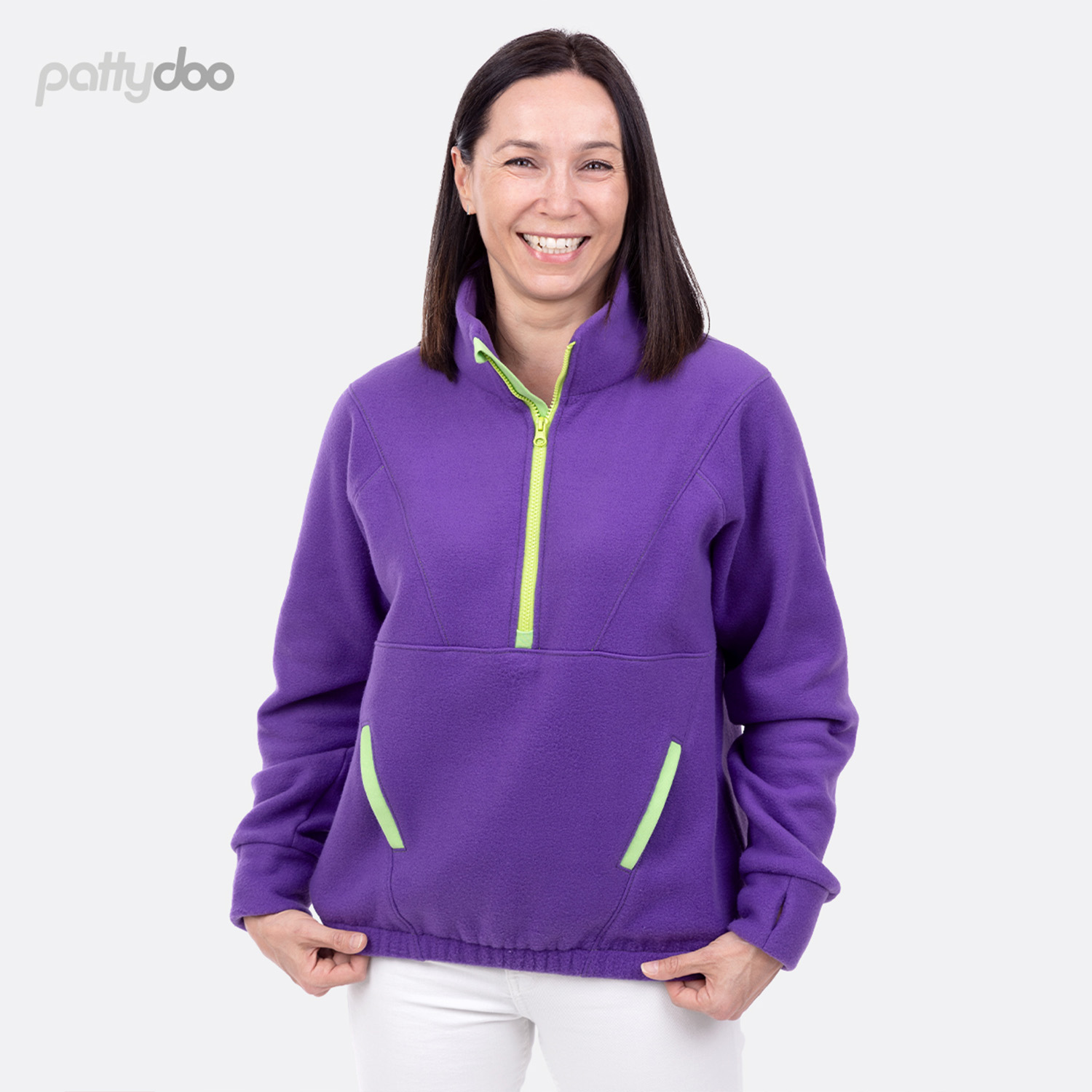 Mit dem Papier-Schnittmuster „Troyer“ nähst du dir deinen neuen Lieblings-Fleecepullover für jede Jahreszeit – lässig, sportlich und herrlich gemütlich. Der Schnitt ist ideal für weich fallende, dehnbare und flauschige Stoffe wie klassischen Fleece, kuscheligen Teddyfleece oder warmen Alpenfleece.