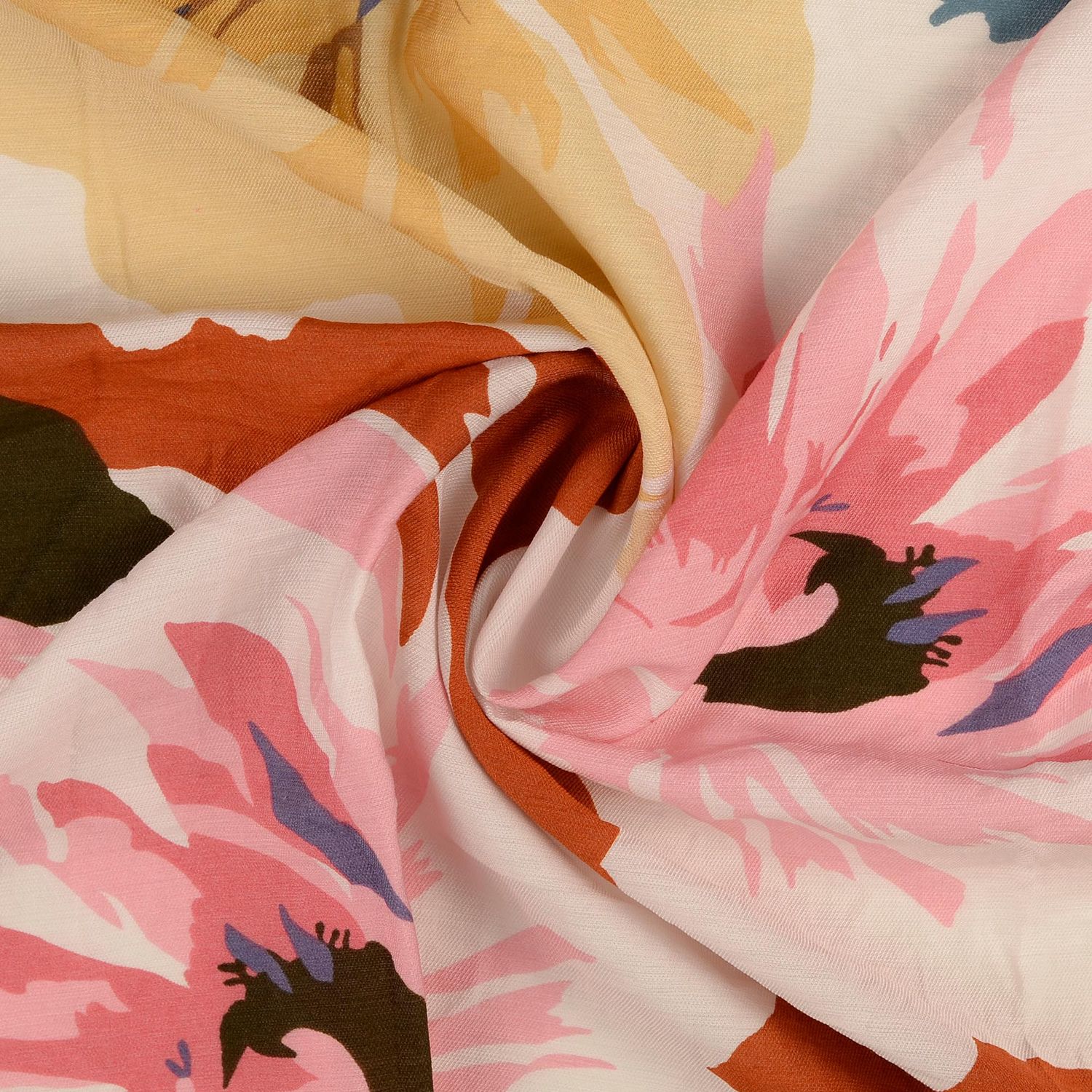 Ob für den Stadtbummel, das Büro oder besondere Anlässe: Dieser Stoff verbindet Eleganz, Leichtigkeit und einen Hauch Urlaubsfeeling in einem modernen, floralen Design.