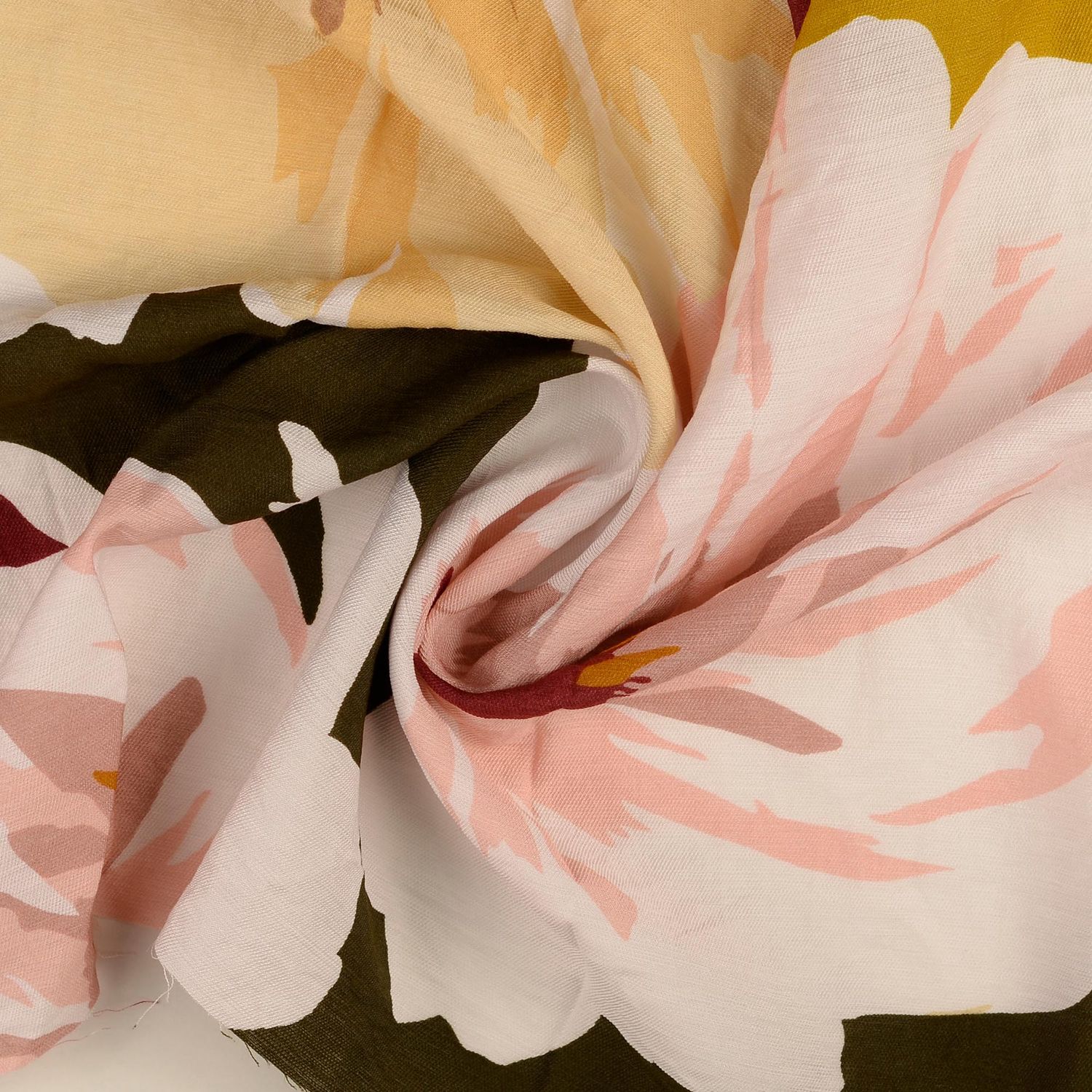 Viskose Twill - Große Blumen Multicolor Ocker